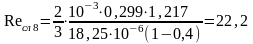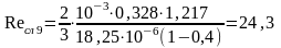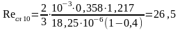 9. Рассчитываем значения числа Рейнольдса по формуле: