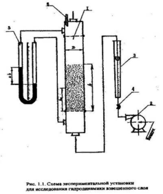 Цель работы: получение экспериментальной и расчетной зависимостей гидравлического сопротивления слоя ΔР, высоты слоя h и порозности ε от скорости газа ωкр; проверка основного уравнения взвешенного слоя.