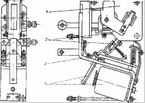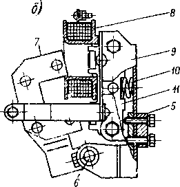 4 - блок электромагнитной системы; 5 - изолированная стальная рейка; 6 - вал; 7 - якорь; 8 - втягивающая катушка; 9 - монтажная скоба;