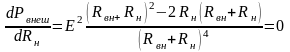 Согласовательный режим работы источника питания (генератора) соответствует условиям его работы, при которых мощность, передаваемая во внешнюю цепь, достигает максимального значения. Определим эти условия из соотношения (17) на основании известных из курса высшей математики приёмов определения максимумов функции. Имеем: