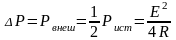В таком случае мощность источника, отдаваемая во внешнюю цепь хотя и максимальна, но равна мощности потерь на внутреннем сопротивлении, поэтому к.п.д. составляет всего 50%.