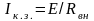 Рассмотрим и проанализируем совокупность зависимостей источника питания (генератора) при изменении его режима от холостого хода до короткого замыкания. Зависимость (4) называется внешней характеристикой генератора (источника питания). Её график (в случае пассивной резистивной нагрузки) изображен на рис.3. С изменением тока от нуля (
