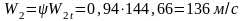 Теоретическая относительная скорость пара на выходе из рабочей решетки