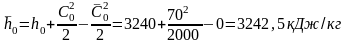Из уравнения сохранения энергии определяем энтальпия пара в точке торможения:
