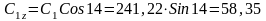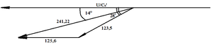Построим треугольник скоростей для сопловой решетки. Принимаем угол выхода потока из сопловой решетки α1=14°.