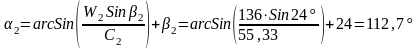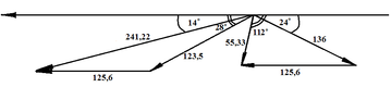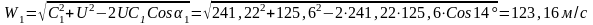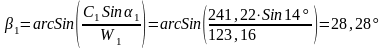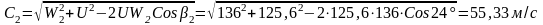 По треугольнику скоростей определили относительную скорость сопловой решетки W1=123,5м/с и угол входа потока в рабочую решетку β=28°С.