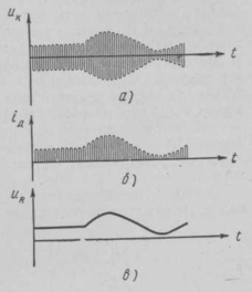 Амплитудная модуляция. Она наиболее часто применяется при передаче сигналов звуковой частоты. Амплитуда тока высокой частоты Jm0 изменяется под воздействием звуковых колебаний, как это показано на рисунке