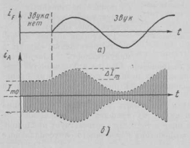 Как видно из рисунка 1, несущая частота остается неизменной, а амплитуда изменяется в такт со звуком. Для количественной оценки применяют коэффициент модуляции, равный отношению прироста амплитуды ΔJm тока несущей частоты к амплитуде тока до модуляции: