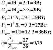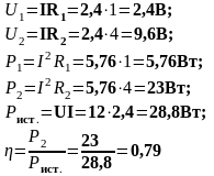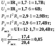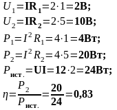 | U (B) | U1 (B) | U2 (B) | I (A) | R1 (Ом) | R2 (Ом) | Rэкв (Ом) | P1 (Вт) | P2 (Вт) | Pист. (Вт) | КПД | Режимы работы |