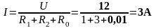 I = E /R1+R2+R0; I = E /R1+R2.