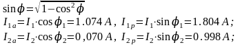 в). I1p > I2p. Берем 1ий результат измерений: I1a = 1.074 А, I1p = 1.804 А, I2a = 0.070 А, I2p = 0.998 А, Ia = 1.144 А, Ip = -0.807 А.