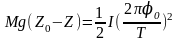 - потенциальная энергия системы, I – момент инерции платформы вместе с исследуемым телом, М – масса платформы с телом, z0 – начальная координата точки О' (при (=0), z – координата точки О при текущем значении . Точкой обозначено дифференцирование по времени.