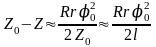 z2=l2-R2-r2+2Rrcos0=Z02 – 2Rr(1-cos0),
