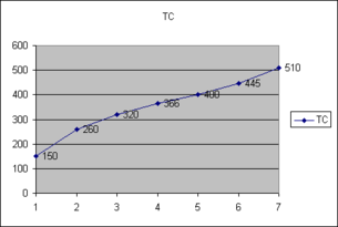 4) В урівноваженому стані підприємство отримає збитки у розмірі 26 (див табл.), тому що виручка(TR) не окупила повністю витрати на виробництво(TC).
