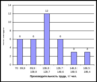 Рис. 2.1 Гистограмма распределения заводов по производительности труда.