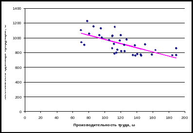 - сделайте вывод о возможной форме связи между себестоимостью продукции и производительностью труда;