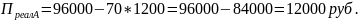 Определить прибыль от реализации продукции, если предприятие выпустило изделий А – 1000 шт., изделий В – 2500 шт. Остатки не реализационной продукции на начало года А- 200 шт., В- 150 шт., На конец года В- 50 шт.. Розничная цена изделия А – 80 руб., В- 65 руб., с/с изделия А- 70, В – 50.