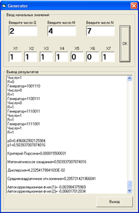 Такая процедура повторяется М – раз, в процессе которой получается исследуемая базовая псевдослучайная последовательность Х1,Х2,...хn, где M=N. Для данной последовательности рассчитываются ее вероятностные характеристики.