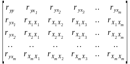 - парні коефіцієнти кореляції між Y і незалежними змінними Х,