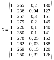 Матриця Х доповнюється стовбцем одиниць для врахування коефіцієнта регресії b0: