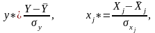 Зв’язок між оцінками параметрів моделі на основі нормалізованих і ненормалізованих змінних запишеться таким чином: