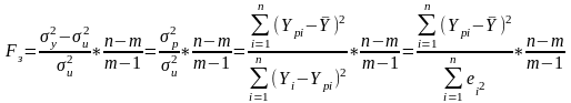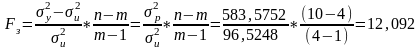 Значущість всієї моделі в цілому будемо проводити для рівня значущості =0,05 за допомогою F-крітерія при (m-1) і (n-m) ступенях свободи. Розрахункове значення F-критерію розраховується по формулі: