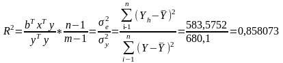 Його значення показує, що на 85,8073% варіацію змінної Y можна пояснити варіацією пояснювальних змінних Х.