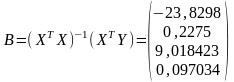 Y = -23,83+0,23X1+9,018X2+0,097X3