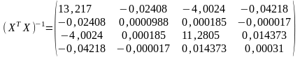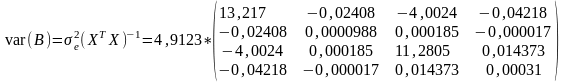 На діагоналі коваріаційної матриці отримуємо дисперсії коефіцієнтів регресії bj: