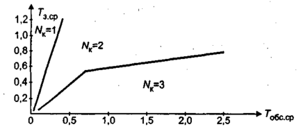 Рис.7. Зависимость оптимального числа каналов nk от параметров Тз.ср и Тобс.ср