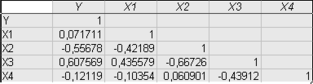 Анализ матрицы коэффициентов парной корреляции показывает, что фактор Х3(содержание лайкры) оказывает наибольшее влияние на У(цена колготок), т.к.