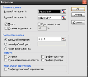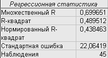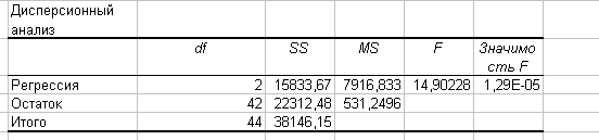 Эта операция проводится с помощью инструмента анализа данных Регрессия. В диалоговом окне при заполнении параметра входной интервал Х следует указать все столбцы.