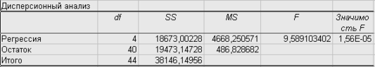 к =n-m-1=45-4-1=40 t-кр.таб=2.0211