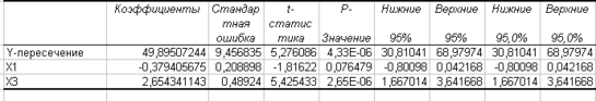 У = 49,89 – 0,37Х1 + 2,65Х3.