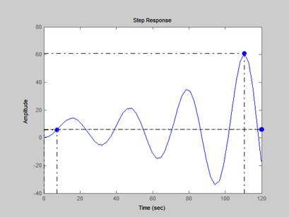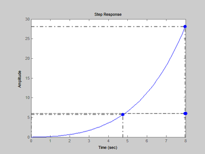 Рис.8.a. Неустойчивое звено второго порядка (при T1=0.5; T2=5; k=1)