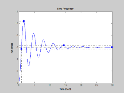 Рис.8.b. Неустойчивое звено второго порядка (при T1=0.5; T2=5; k=6)