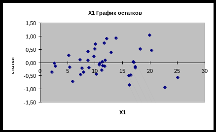 Так как расположение остатков на графике не имеет направленности, то они независимы от значений фактора x1.