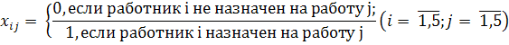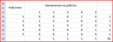 1. Общее время, необходимое для завершения всех видов работ, равно 83 ч. Закрепление работников за работами приведено на рис.2.3, т.е. работник Р1 будет назначен на работу 4, работник Р2 на работу 1, работник Р3 на работу 2, работник Р4 на работу 5, работник Р5 на работу 3.