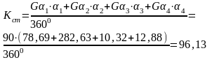 | 1 - αт стен | Приве-дённый вес Gпр кгс/м2 | Суммарный вес против углов Gα, Кгс/м2 |