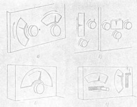 Некоторые варианты расположения шкал, указателей и ручек управления, а также направления их движения показаны на рис.4.
