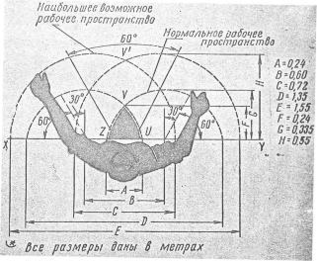 Основные органы управления целесообразно размещать в оптимальной зоне, аварийные – в средней зоне досягаемости руки и второстепенные в зоне максимальной досягаемости.