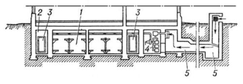 Противорадиационные укрытия (рис. 2) обеспечивают защиту людей главным образом от радиоактивного и светового излучений. В качестве противорадиационных укрытий используются приспособленные и оборудованные для этой цели подвальные и наземные помещения зданий, погреба, подполья, шахты, горные выработки, а также специально построенные противорадиационные укрытия из сборного бетона и железобетона, деревоземляные, из самана, хворостяных фашин и т.п. Защитные свойства противорадиационных укрытий обеспечиваются толщей грунтовой обсыпки, ограждающими конструкциями, герметизацией входов и вентиляционных устройств. В них предусматриваются места для размещения санузлов, запасов воды и продовольствия. Вентиляция противорадиационных укрытий может быть естественной и принудительной. Для подачи воздуха используются вентиляторы с ручным или механическим приводом.