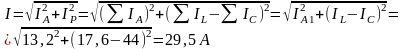 I1=22А; I2=44А; I=29,5А; S=6490 ВА; Р=2950,5 Вт; Q=-5808,5 вар; =-63,50.
