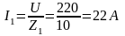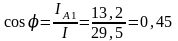 IА1 = I1 · cos φ1 = 22 · 0,4 = 13,2 А;