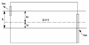 Її можна визначити з наступного співвідношення: відстані від площини рівних тисків до центрів нижніх і верхніх прорізів відповідно h1 та h2, обернено пропорційні квадратам площ цих прорізів Sдв та Fкв, тобто