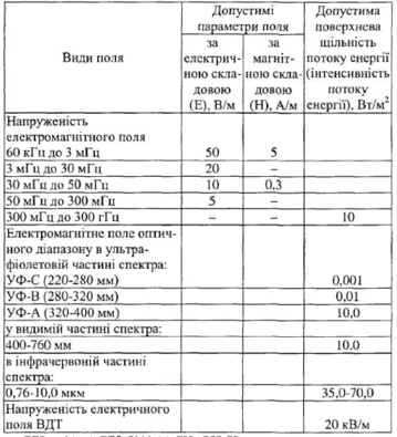 Таблиця 4. Допустимі параметри електромагнітних випромінювань електростатичного поля