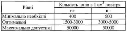 Рівні позитивних і негативних іонів у повітрі приміщень з ПК мають відповідати санітарно-гігієнічним нормам №2152–80 (табл. 2).