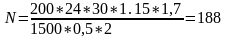 Визначити необхідну кількість світильників загального призначення для створення в приміщенні розміром 2430 м нормованого освітлення 2000 лк. Світловий потік газорозрядної лампи дорівнює 1500 лм, коефіцієнт запасу – 1,7, коефіцієнт нерівномірності освітлення 1,15, коефіцієнт використання світлового потоку – 0,5. Система освітлення комбінована.