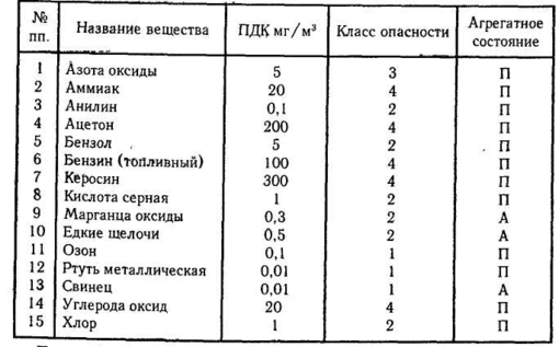 Таблица 1. ПДК некоторых вредных веществ в воздухе рабочей зоны