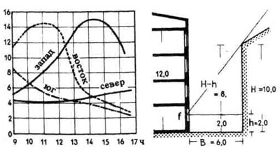 1. График для определения освещённости наружной поверхности окон во дворах (без учёта затенения оконными откосами и отражения от стен противоположных зданий).
